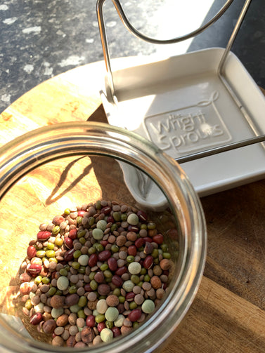 Our Crunchy Mix is made up of Adzuki, Blue Pea, Lentil, Mung and Whero Pea Seeds.